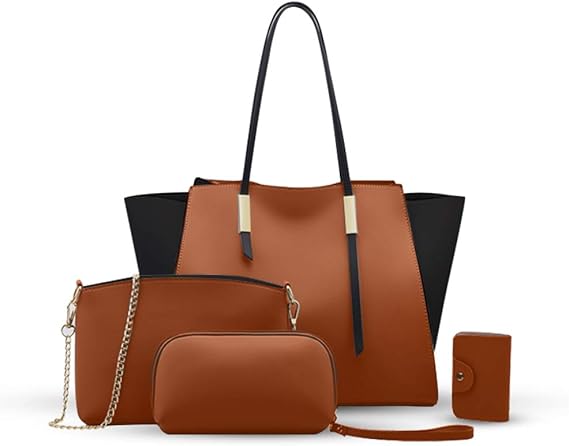 Amazon Menaka トートバッグ レディース バッグ ショルダーバッグ ハンドバッグ 通勤 鞄女性用 4点セット 底鋲 ビジネス 入学式 誕生日プレゼント ブラウン ハンドバッグ